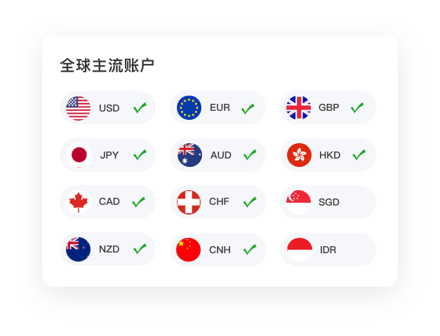 一鍵開通美元、歐元、英鎊、日元等賬戶